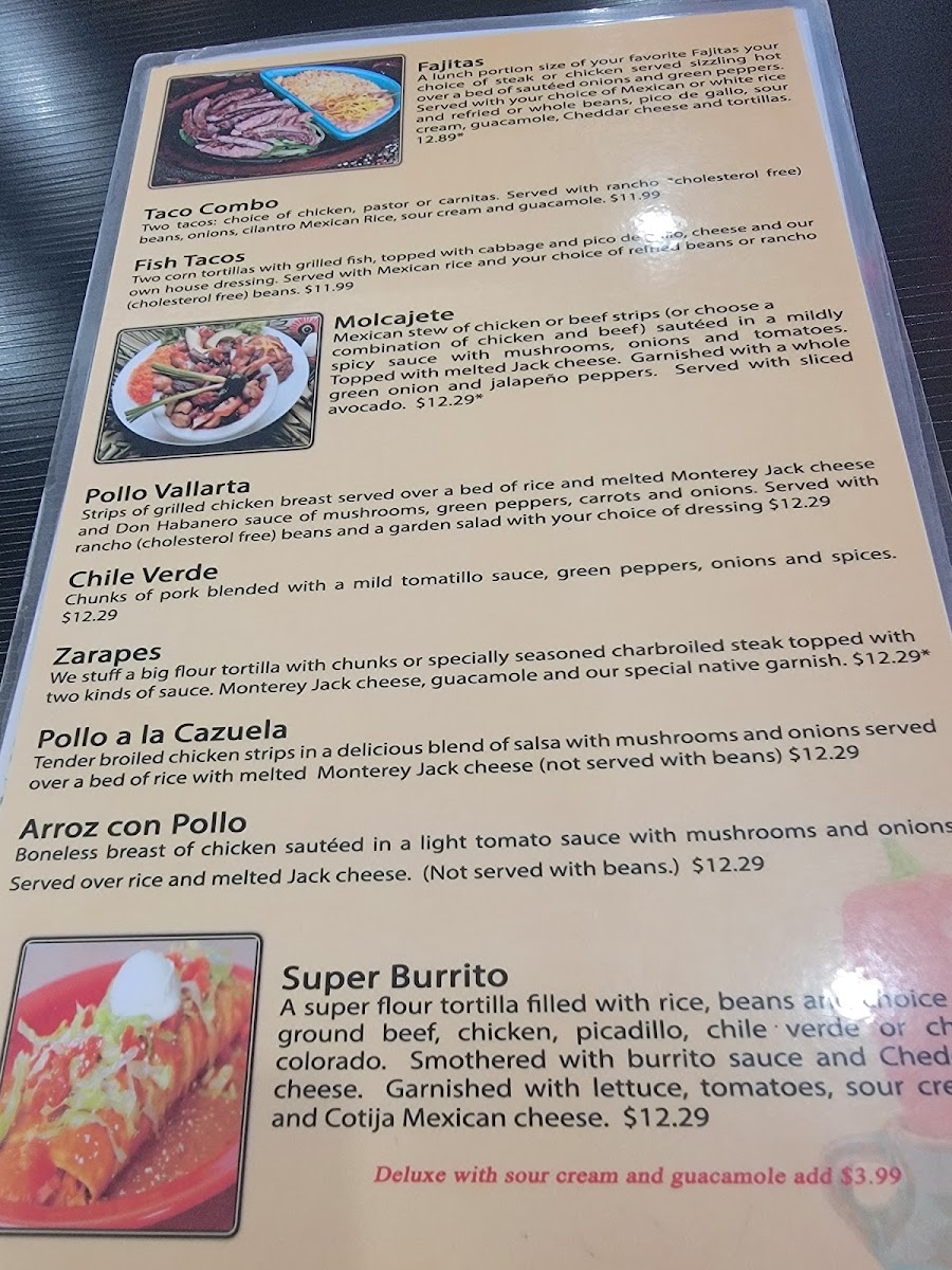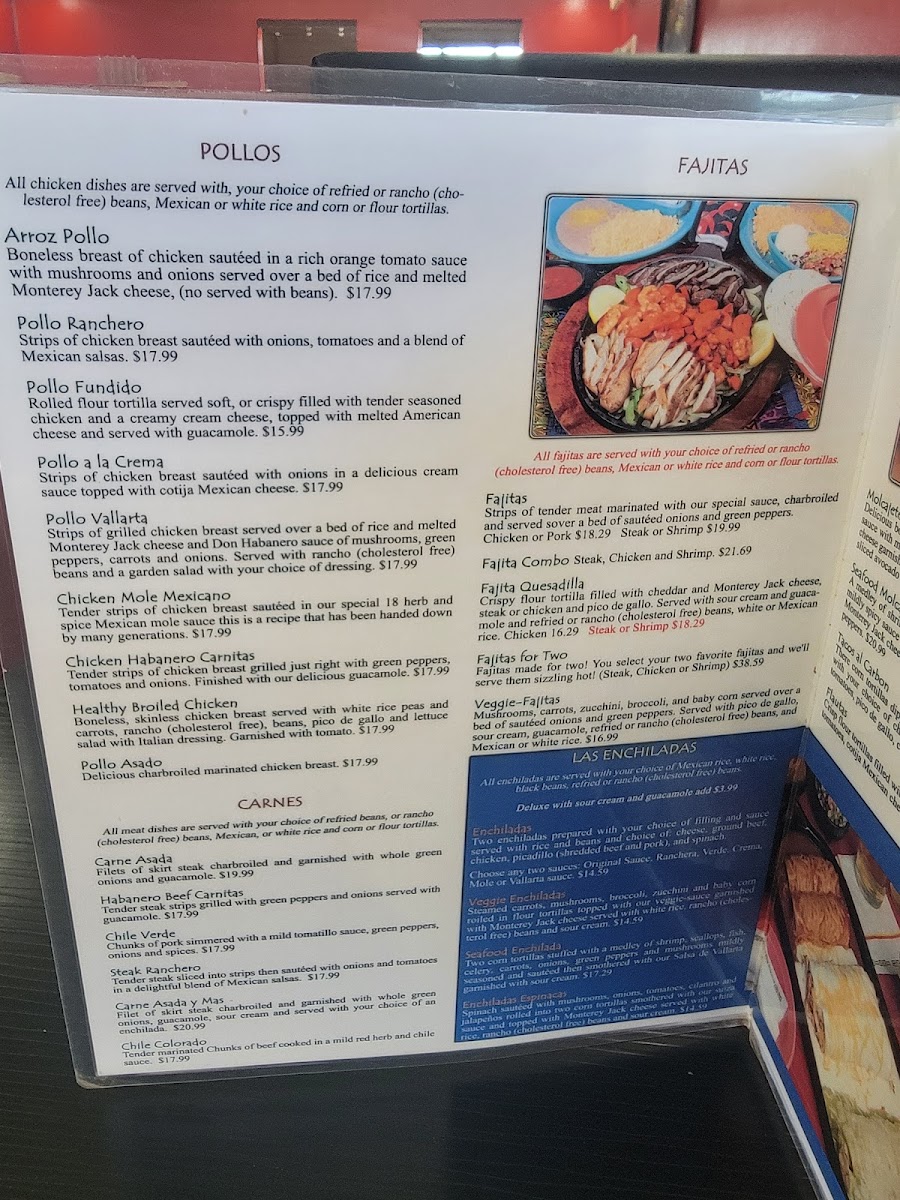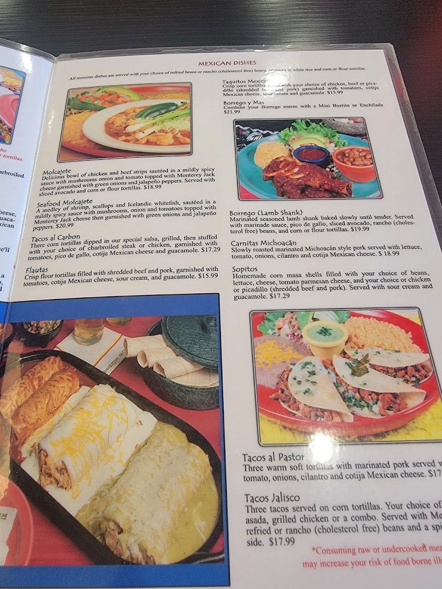 The menu features crowd-pleasers like savory fajitas, the rich and satisfying Southwest Burrito with steak, and comforting options such as chilaquiles and quesadillas. Seafood lovers will find inviting choices like Camarones Al Mojo de Ajo or the Burrito del Mar, while classic chicken dishes—from Pollo Ranchero to Chicken Mole Mexicano—highlight the authentic, homestyle cooking approach.