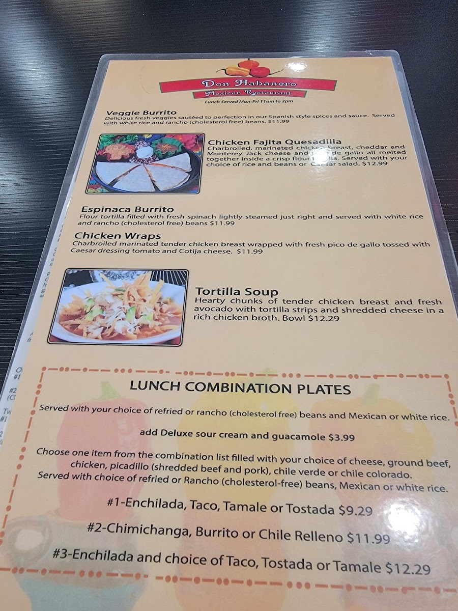 Don Habanero Méxican Restaurant Menu